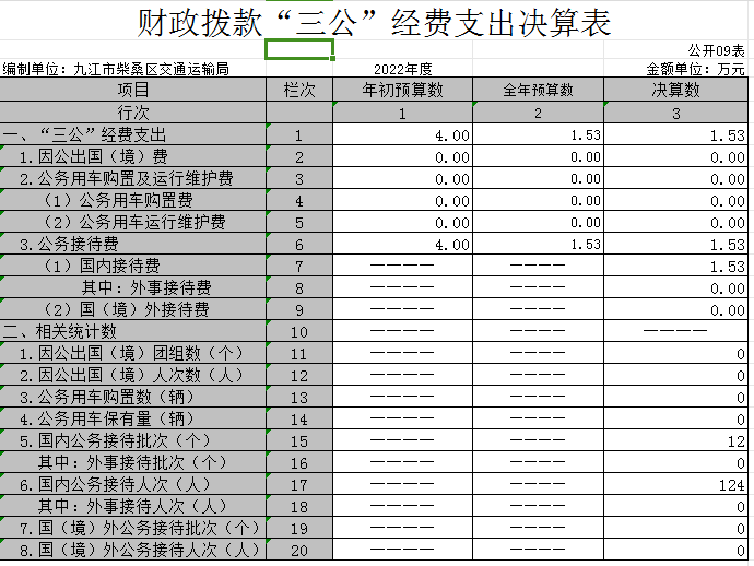 (二)公务接待费支出全年预算数为4万元,决算数为1.53万元,完成全年预算的38%,决算数较2021年减少0.63万元,下降29%,主要原因是减少开支。决算数较全年预算数增加(减少)的主要原因是:节约公务接待费用开支,费用相应减少。全年国内公务接待12 批,累计接待 124 人次,其中外事接待0批,累计接待0 人次,主要为:招商接待。