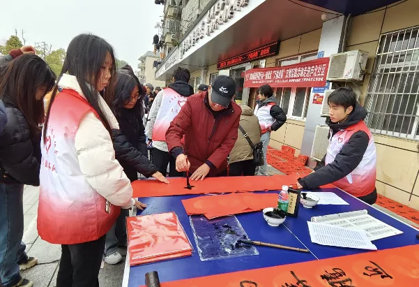 活动以书法艺术为载体、以公益服务为纽带,特别邀请江西省“四个100”非遗导师曾高雨、文艺导师陶婷走进社区,开展政策理论宣讲,将党的政策理论与新春祝福一同送到群众身边,让文明实践更接地气、更有温度。