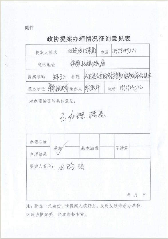 附:政协提案办理情况征询意见表