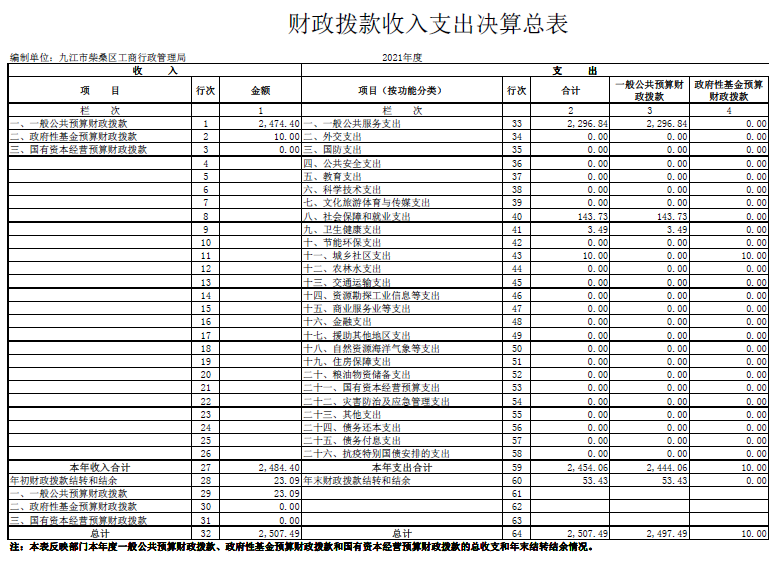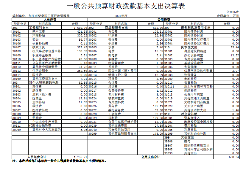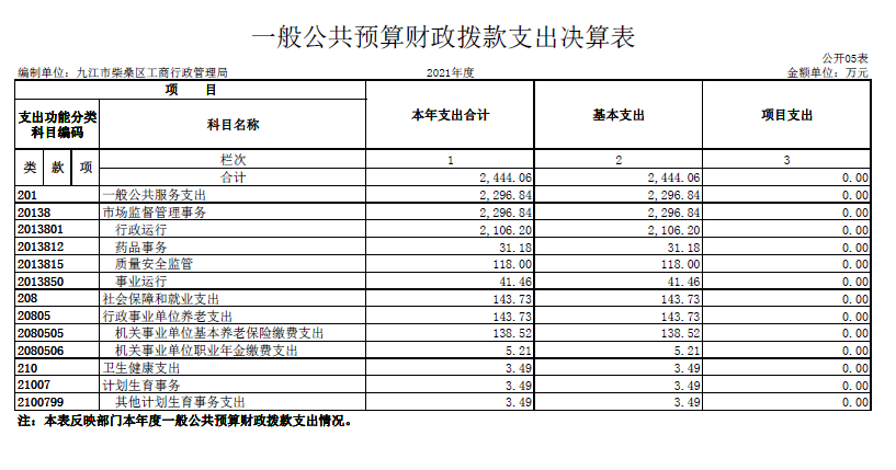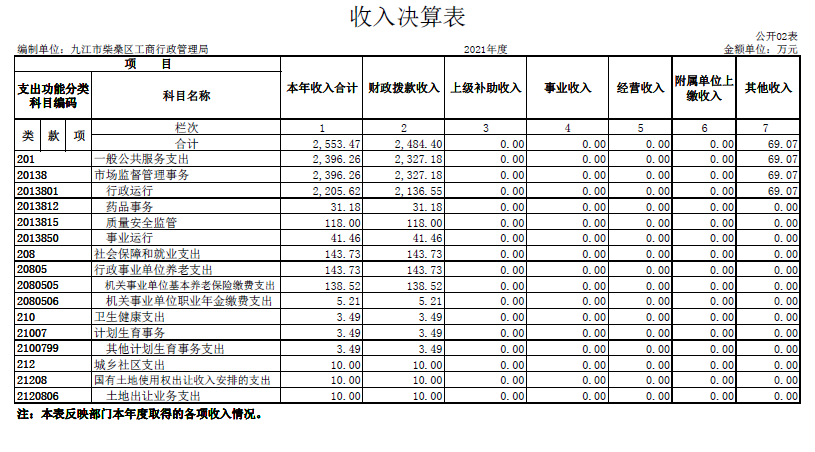 柴桑区市场监管部门2021年度决算公开