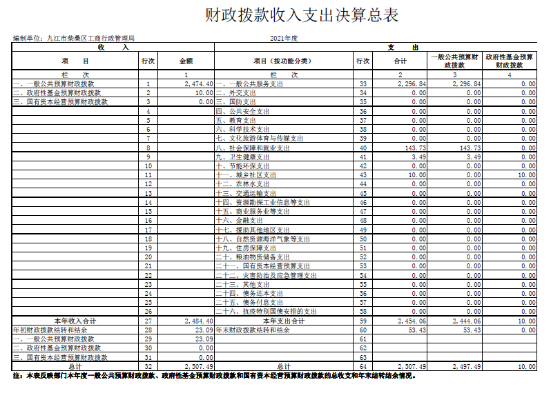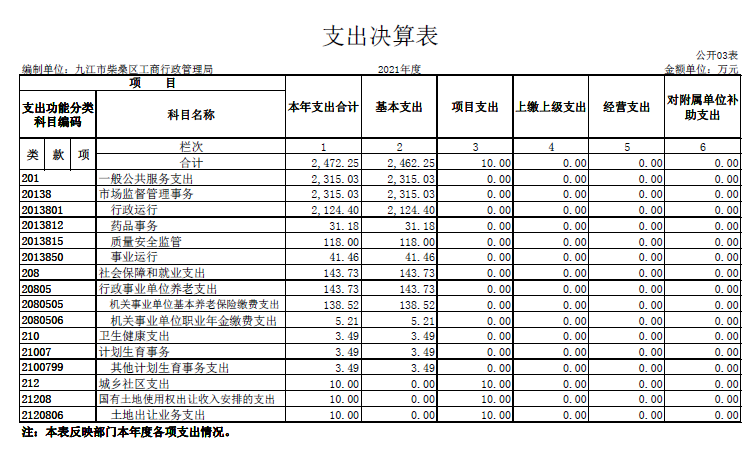柴桑区市场监管部门2021年度决算公开