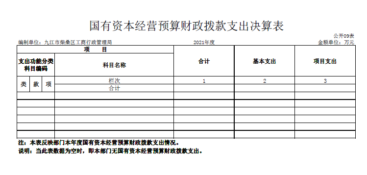 九、国有资本经营预算财政拨款支出决算表