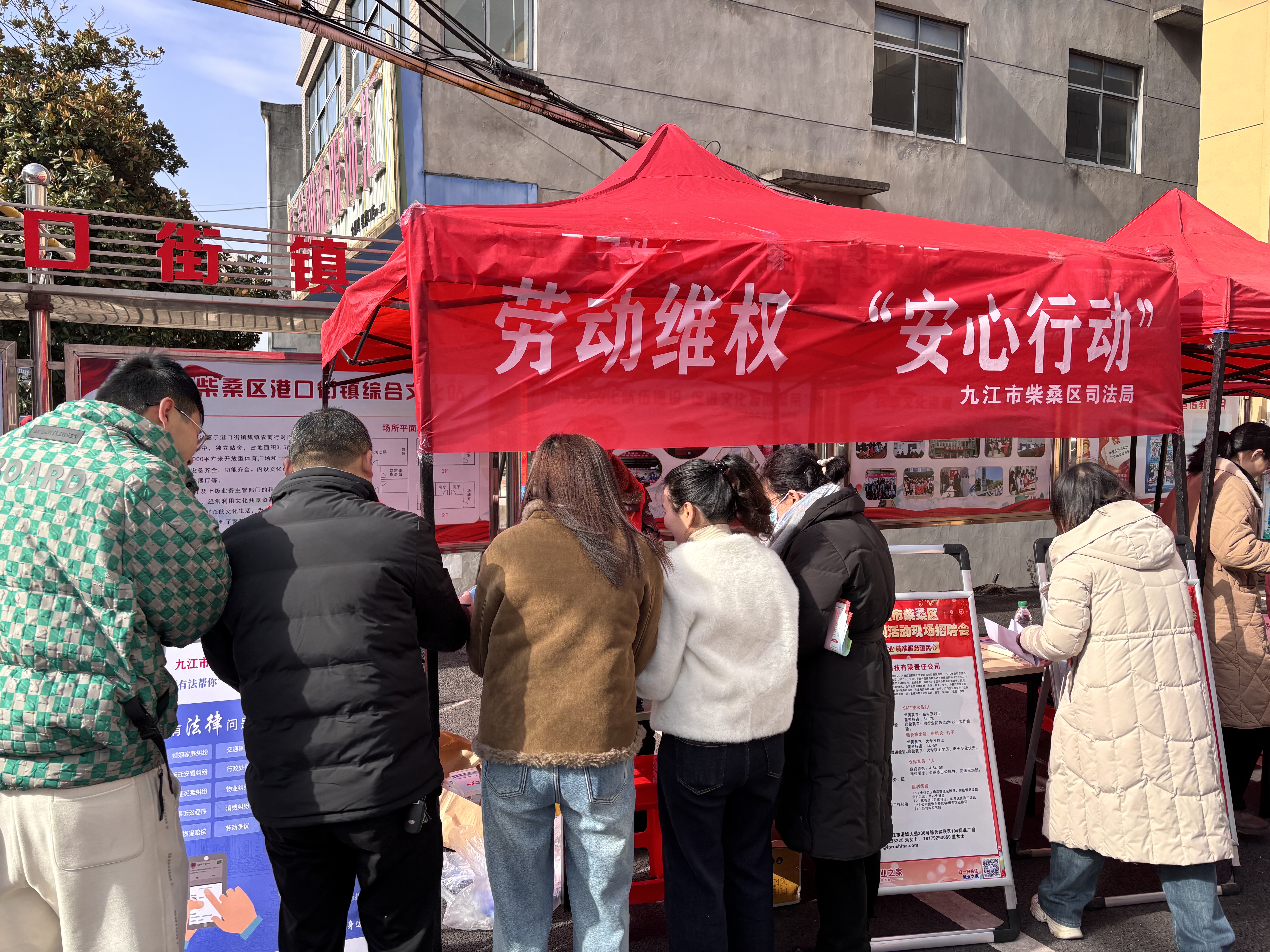 为贯彻落实司法部办公厅关于组织开展维护劳动者合法权益法律援助“安心行动”通知的精神要求。2月7日,柴桑区司法局走进港口街镇文化站2025年春风行动招聘会,开展维护劳动者合法权益法律援助“安心行动”,为前来应聘务工人员及招聘企业送上新春法律服务。