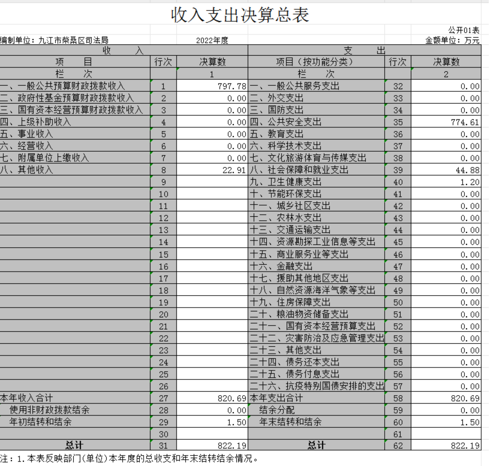 本部门2022年度支出总计822.19万元,其中本年支出合计820.69万元,较2021年增加98.02万元,增长11%,主要原因是:人员增加,工资增加;年末结转和结余1.5万元,较2021年减少280.56万元,下降187 %,主要原因是:财政结转资金收回。
