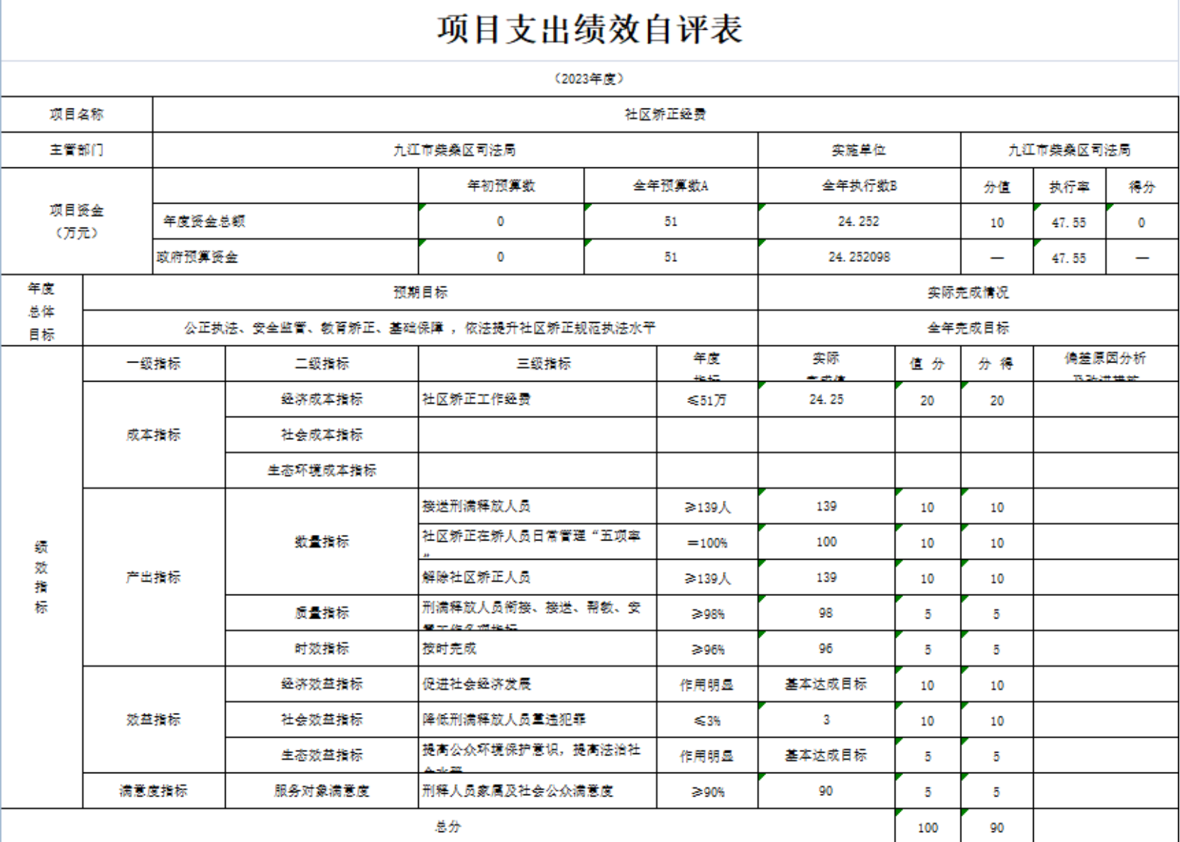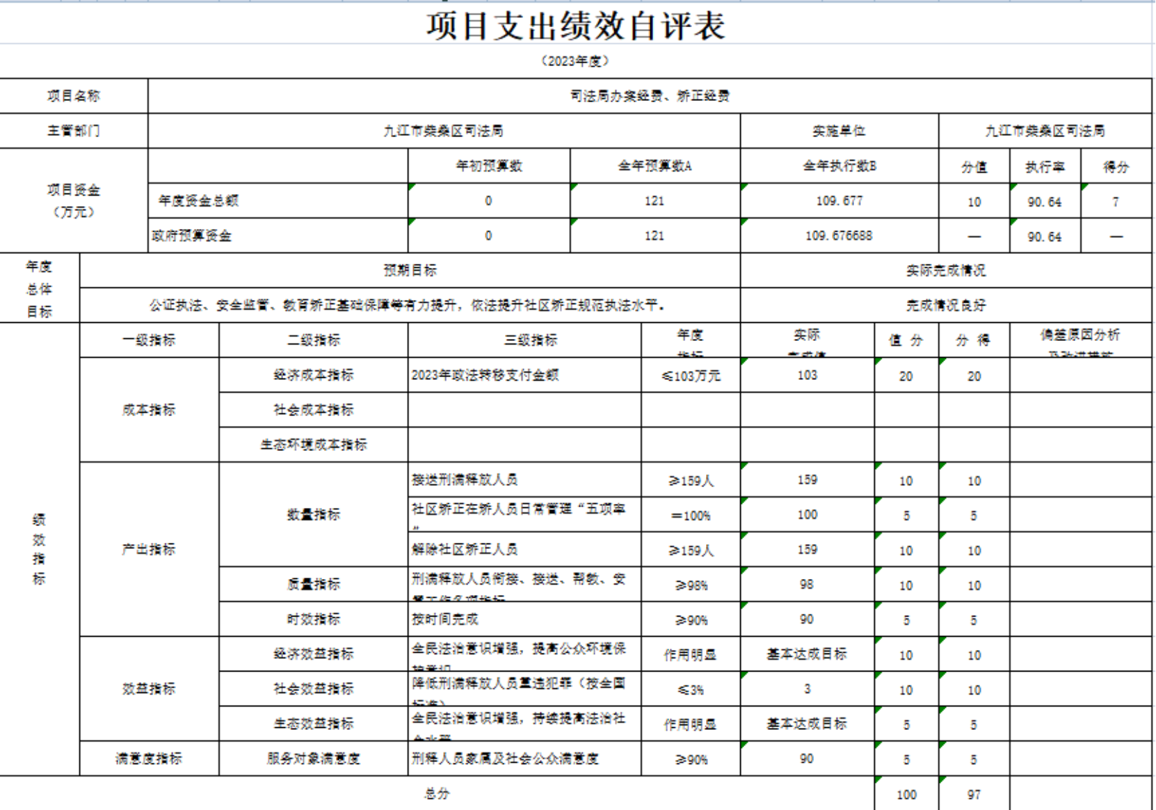 为人民群众提供有效的公共法律服务目标值100%,完成值100%;降低刑满释放人员重违犯罪,低于全国标准≦3。