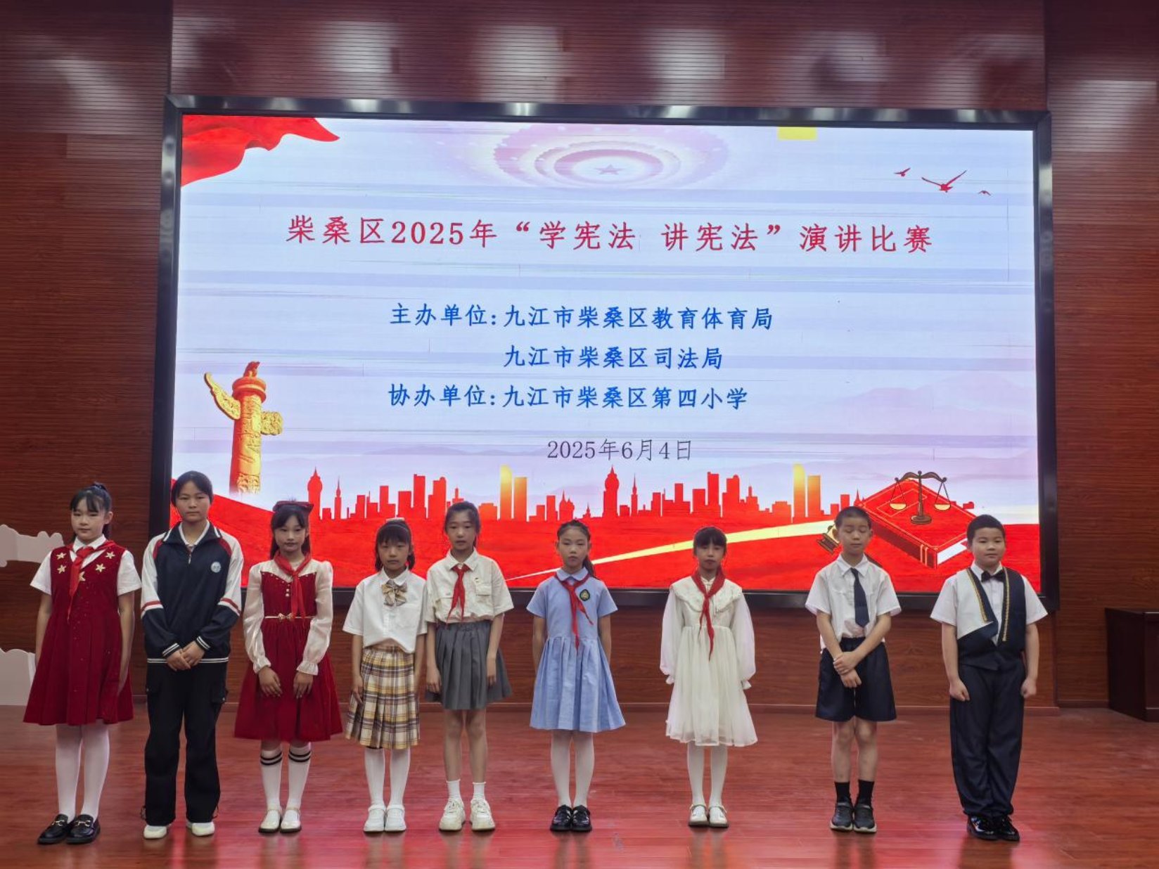 为深入贯彻习近平法治思想,弘扬宪法精神,2025年6月4日,由柴桑区教育体育局和司法局主办的全区2025年“学宪法 讲宪法”演讲比赛在柴桑区第四小学隆重举行。此次比赛吸引了来自全区各学校的34名优秀学生代表参与,共同展现对宪法的深刻理解与尊崇。