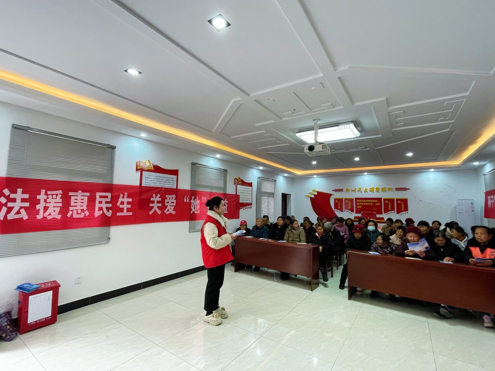 为切实提升广大妇女同胞的法律素养和依法维权能力,营造维护妇女权利的良好社会氛围,在“三八妇女节”来临之际,3月7日,柴桑区司法局狮子司法所深入住岭村开展“法援惠民生,关爱‘她’权益”主题普法宣传活动。