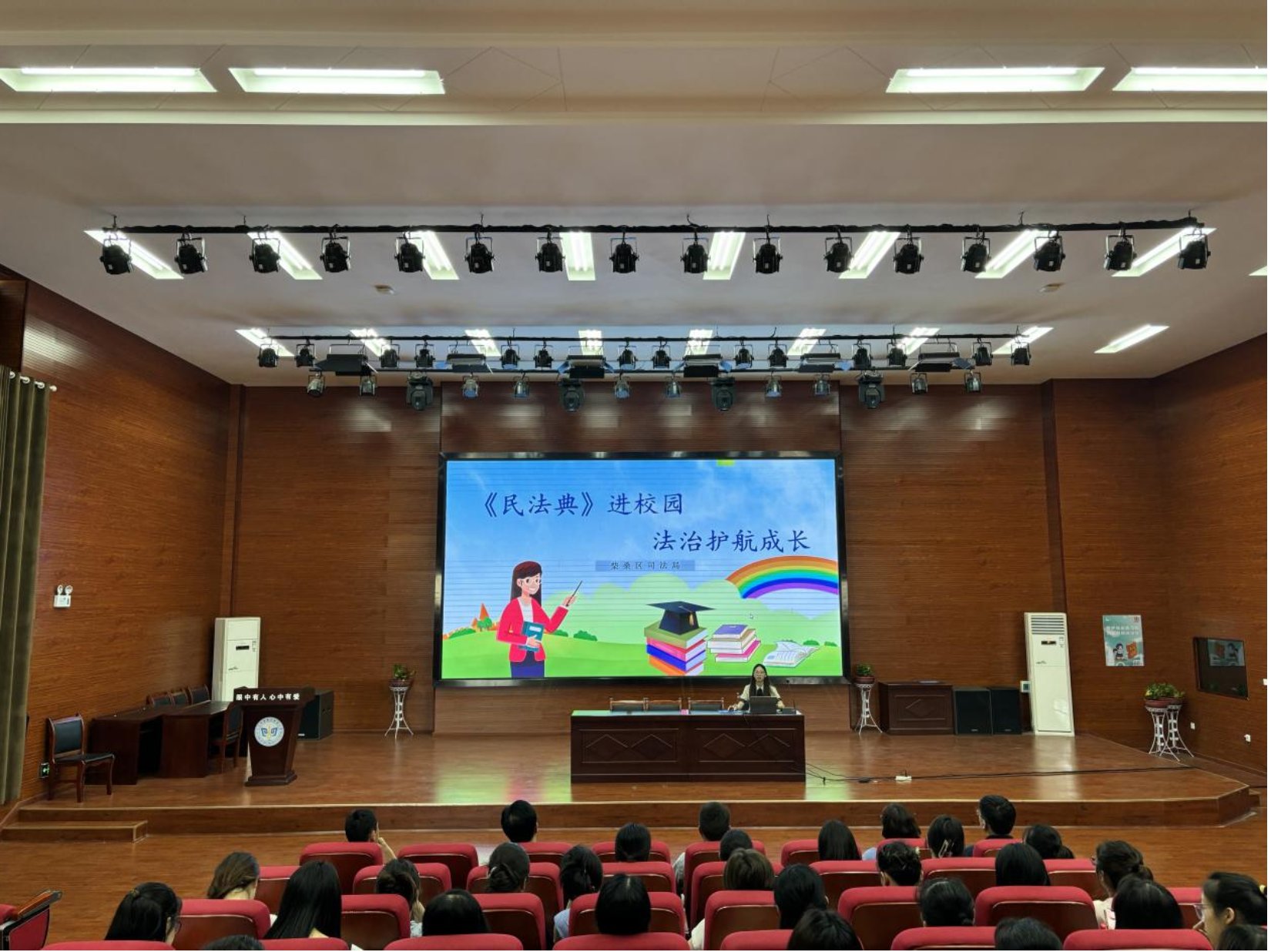 在授课中,司法局工作人员向师生们介绍了《中华人民共和国民法典》的重大意义、编撰历程、主要内容等内容,使师生们对《中华人民共和国民法典》有个初步的了解,通过讲述贴近学生生活的典型案例,如校园欺凌、网络诈骗、未成年人游戏充值等,深入浅出地解读了民法典中与未成年人权益保护密切相关的法律条文,让师生们深刻认识到民法典既是保护自身权益的 “社会生活百科全书”,也是必须遵守的行为规范。