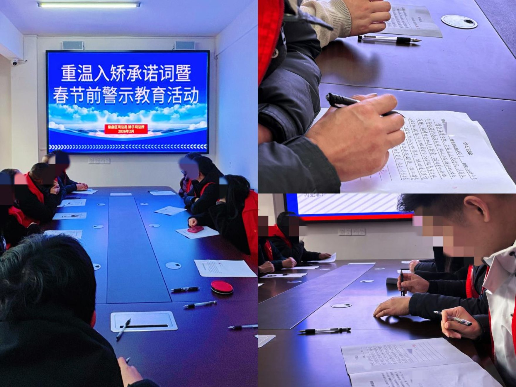 此次重温入矫承诺词活动,既是一次深刻的法治教育,也是一次暖心的思想引导,进一步强化了矫正对象的身份意识和守法初心,让矫正对象家在宣誓中再次牢记矫正承诺,坚定改过自新的决心。