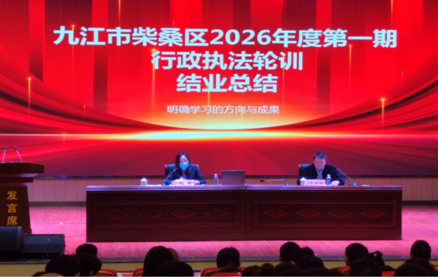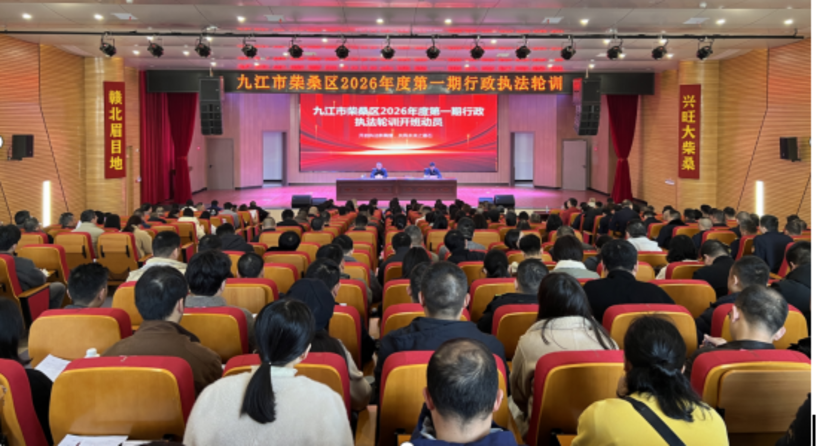 为深入贯彻党的二十届四中全会精神,推进法治政府建设,提升执法人员业务素养。3月19日,柴桑区2026年第一期行政执法轮训在区艺术中心开班,各乡(镇、街道)综合行政执法队,区直及驻区执法单位分管领导及执法人员共290余人参加,区政府副区长、市公安局柴桑分局党委书记、局长冯韬同志作开班讲话。