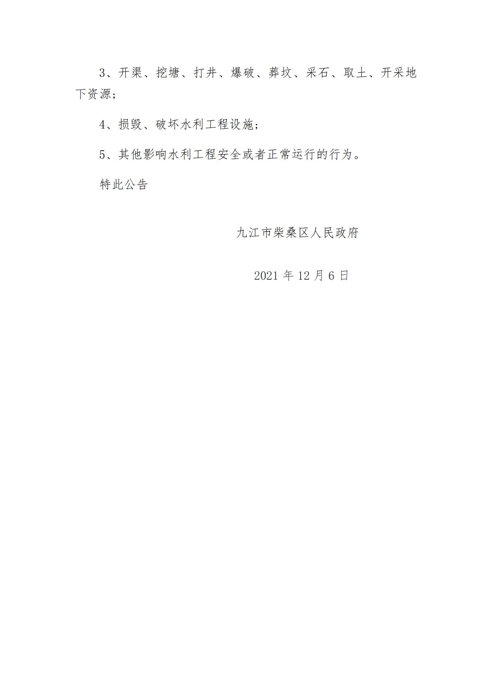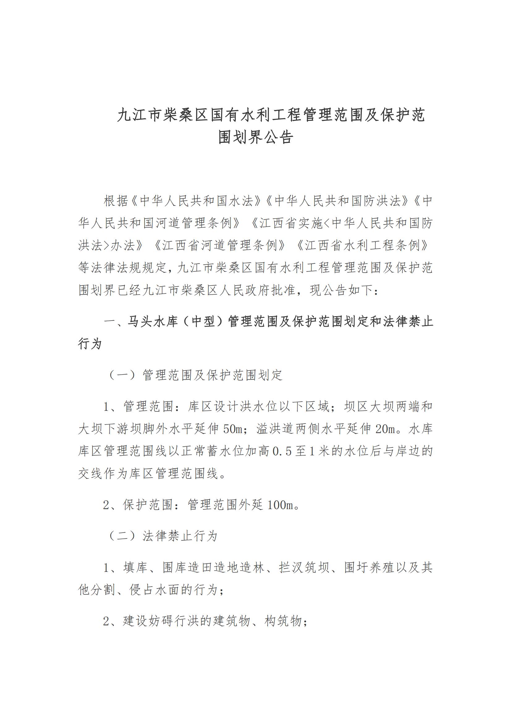 九江市柴桑区国有水利工程管理范围及保护范围划界公告