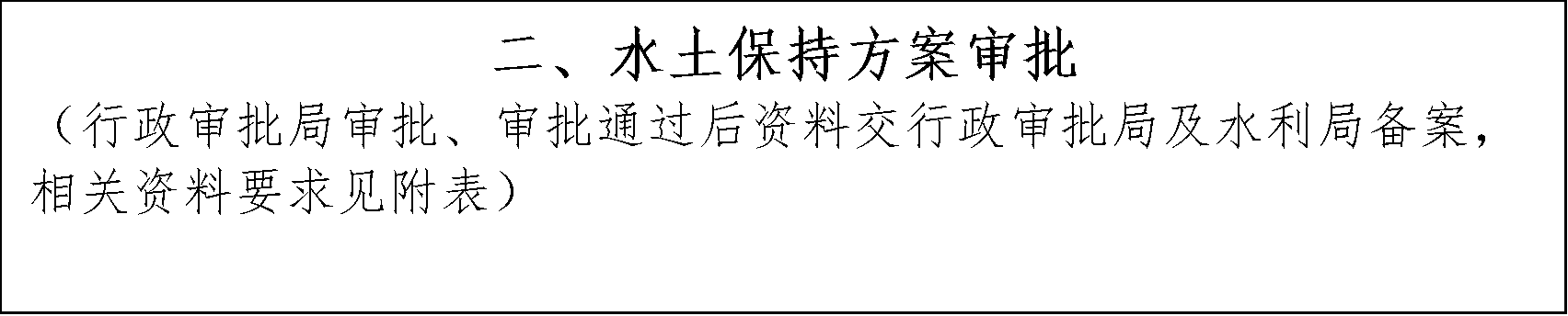 二、水土保持方案的审批(行政审批局审批、审批通过后资料交行政审批局及水利局备案,相关资料要求见附表)