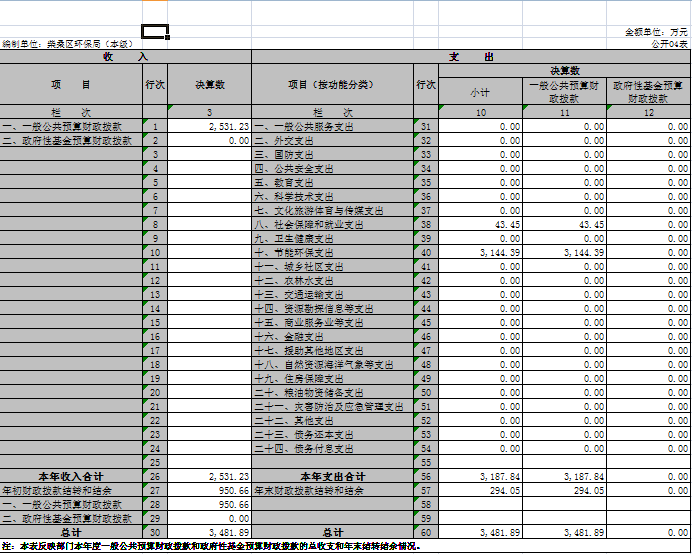本部门2019年度收入总计3481.89万元,其中年初结转和结余950.66万元,较2018年增加1967.26 万元,增长129.88%;本年收入合计2531.23万元,较2018年增加1512.05万元,增长148.35%,主要原因是:环境监测与监察、大气、土壤污染防治专项资金增加。