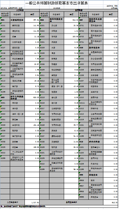 9.基本支出:指为保障机构正常运转、完成日常工作任务而发生的人员经费和公用经费。其中:人员经费指政府收支分类经济科目中的“工资福利支出”和“对个人和家庭的补助”;公用经费指政府收支分类经济科目中除“工资福利支出”和“对个人和家庭的补助”外的其他支出。
