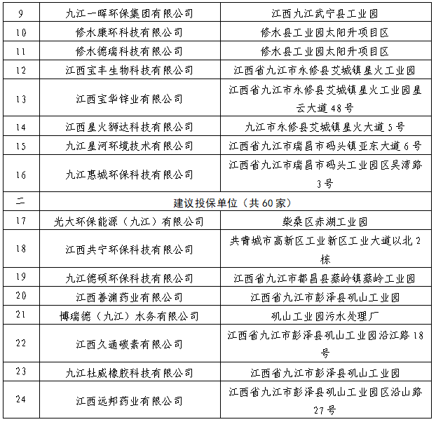 关于九江市2024年环境污染责任保险投保单位名单的公示