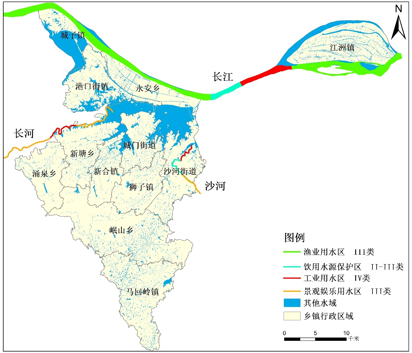 全区水域总面积1.61万公顷,占全区国土总面积18.47%。水域流向主要以岷山、黄老门分水岭主界南北分流。南流经德安博阳河入鄱阳湖的流域面积218平方千米,北流经赛城湖、七里湖入长江的流域面积433.2平方千米,经赤湖流入长江的流域面积54平方千米,直接注入长江的流域面积167.8平方千米,江、湖、河融会贯通。