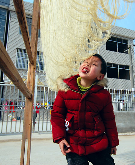 每年的腊月就是手工油面制作的最佳时期,柴桑区港口的纯手工制作油面已有几百年,想起那冬日煦暖阳光里,家家户户院子里都挂满了那千丝万缕油面情形,已成为我最美的回忆。如今那丝丝缕缕的牵挂,伴着故乡的逐渐老去,再也难以见到那热闹的场景,也许用不了多少年,那些油面连同记忆都也会像尘埃一样消散,深深埋在历史的记忆里。