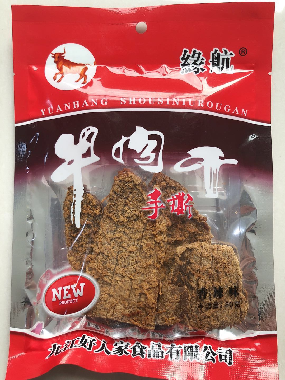牛肉干是我国各族人们都喜爱的肉类方便食品,采用传统工艺加工生产。牛肉干,具有风味独特、营养丰富、储存期较长,居家旅行携带方便等优点,颇受广大消费者的喜爱。目前随着人们生活水平的提高,这类产品在市场上已随处可见,尤其是在居家、旅游中充当一项高档的休闲食品。
