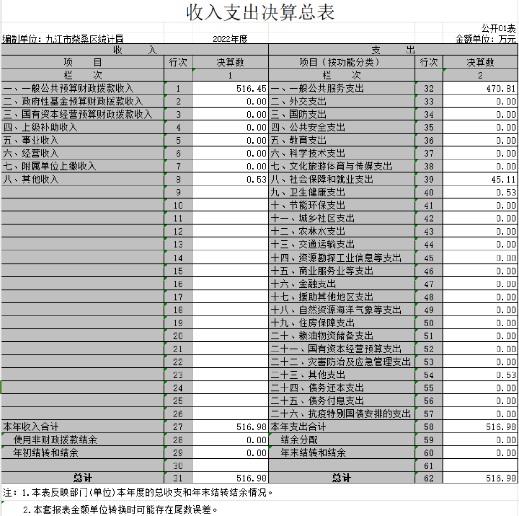 本部门2022年度支出总计516.98万元,其中本年支出合计516.98万元,较2021年减少152.4万元,下降22.8 %,主要原因是:2021年全国人口普查工作开展导致当年经费支出较多;年末结转和结余0万元,与2021年持平。