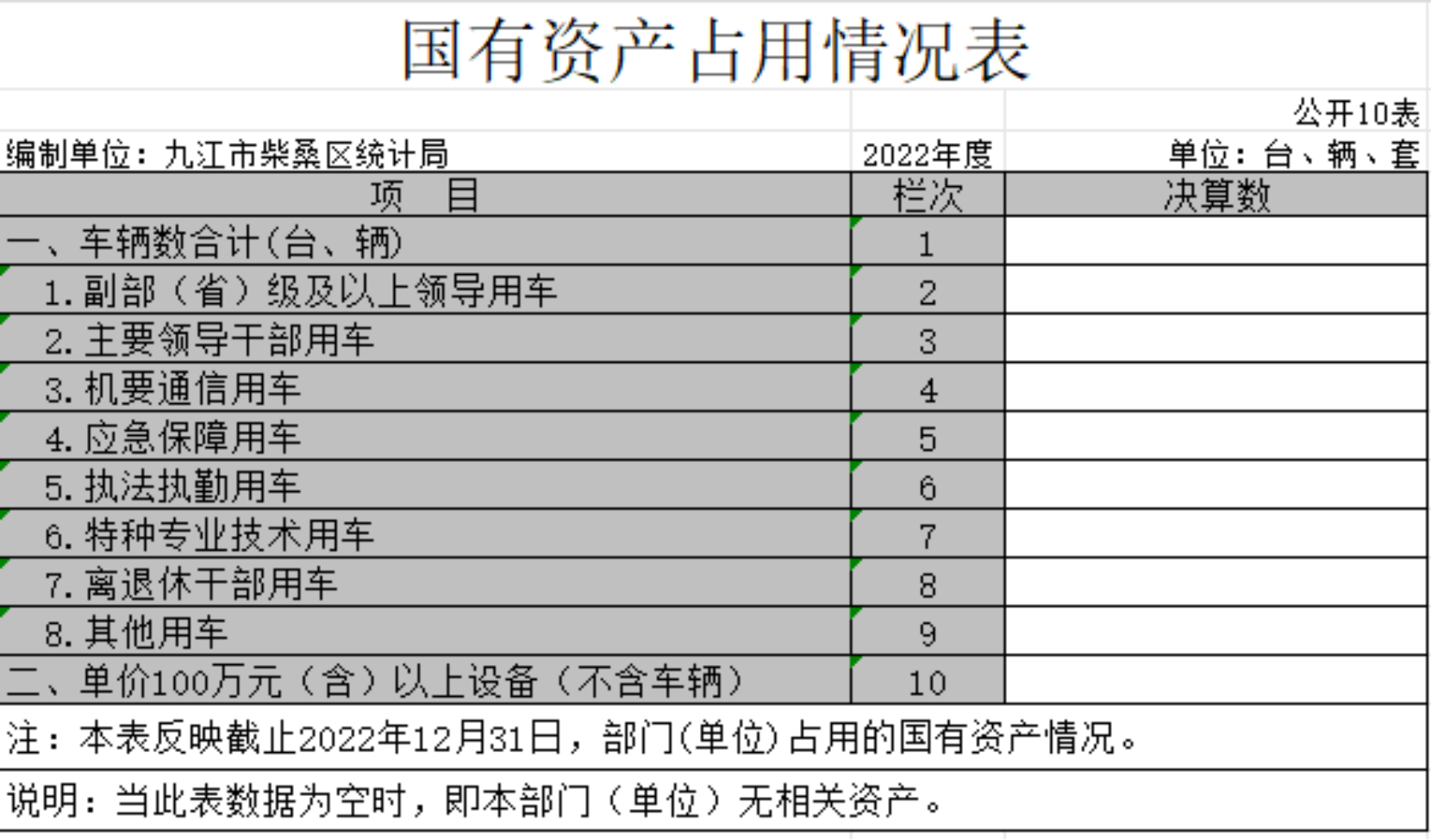 截止2022年12月31日,本部门国有资产占用情况见公开10表《国有资产占用情况表》。