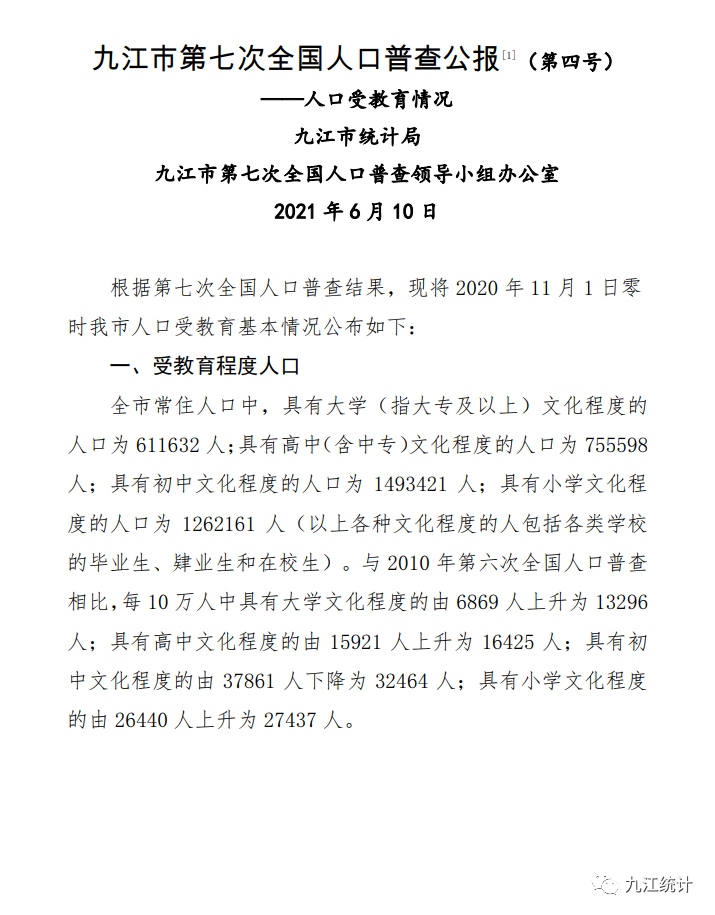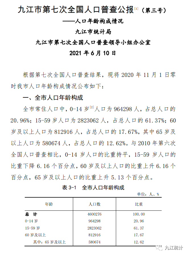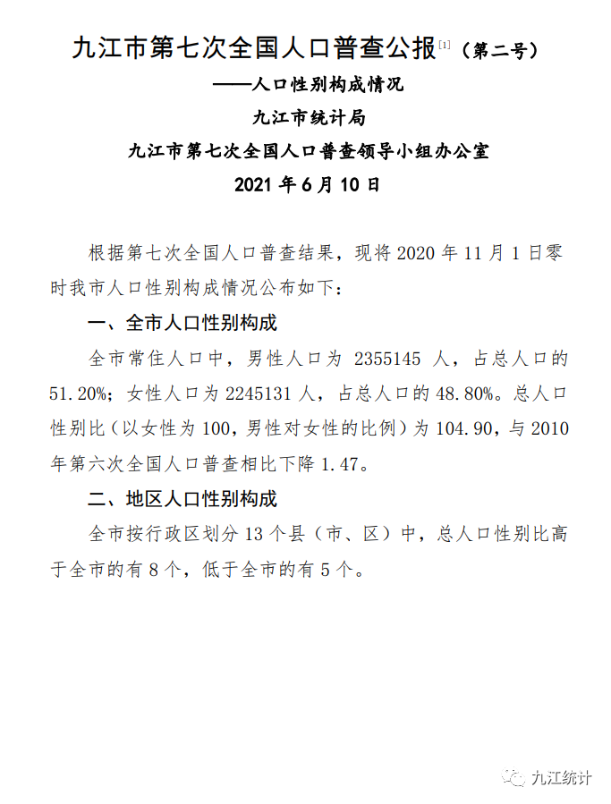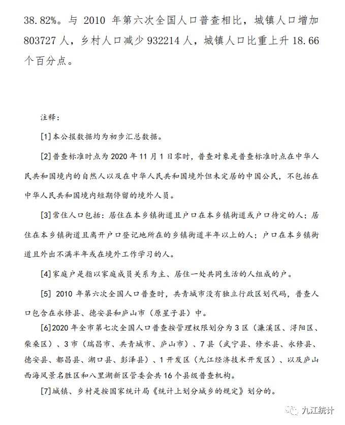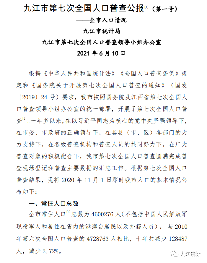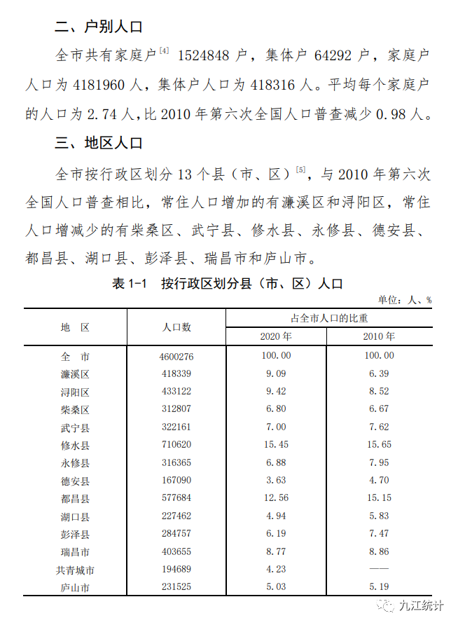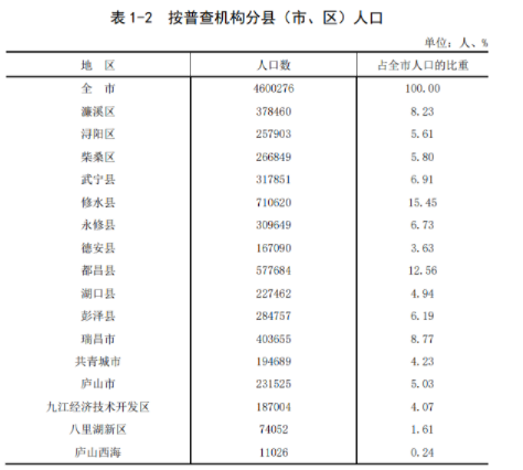 九江市人口普查结果公布!来看看九江哪个县市区人最多?