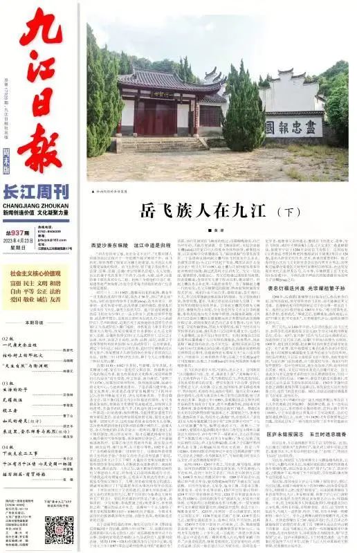 岳珂(1183~1243)字肃之,号亦斋,晚号倦翁、棠湖翁。岳珂自幼跟随父亲岳霖宦游各地,六岁在湘南,八岁赴杭州,直到十岁时父亲在广州去世后回到九江读书,1198年参加江西漕试并中举。1205年开始出仕,监镇江府户部大军仓,曾为韩侂[tuō]胄的“开禧北伐”运送钱粮。后历任光禄丞、太官令、扈寺主簿、司农寺主簿、军器监丞、司农寺丞等京职,1217年出任嘉兴知府。1219年任江南东路转运判官,1221年任军器监淮东总领,到1228年,岳珂的职务升至“朝请大夫、权尚书户部侍郎、总领浙西江东财赋淮东军马钱粮、专一报发御前军马文字兼提领措置屯田、通城县开国男、食邑三百户、赐紫金鱼袋”。1233年,岳珂因一首小诗被罢官,回到九江闲居五年。1238年起复任湖广总领,1239年罢归九江,旋拜宝谟阁直学士、提举江州太平兴国宫,封邺侯。1240年7月权户部尚书,任淮南、江、浙、荆湖制置茶盐使,兼守当涂。1241年遭弹劾罢官再回九江。岳珂为宋廷理财二十多年,是一方能吏。“西望沙羡东秣陵,湓江中道是归程。柳阴系缆人归后,频有黄鹂三四声。”沙羡是指武昌,秣陵是指南京,无论宦游何处,归程总在湓浦,岳氏一脉总是以九江为家乡的。岳珂也是一位学者,他继承父亲的遗志,整理岳飞的遗文、遗事,为岳飞辩诬,成《吁天辨诬集》五卷、《天定录》二卷进献朝廷,促使宋宁宗于1204年加封岳飞为鄂王。岳珂还有《宝真斋法书赞》《桯史》《愧郯录》《玉楮集》等共计124卷,是后人研究宋代历史、艺术、典章的重要资料。据上海市金山区岳飞文化研究会会长岳巧明多方考证,岳珂极可能葬在柴桑区天坡村叶家墩村后将军洼,在这里发现有宋代石翁仲及石马、石羊等,今被移置于岳飞文化园(岳母墓)中。今南昌扬子洲岳氏的族谱载其为岳珂之子岳䚆[yǐng]之后。