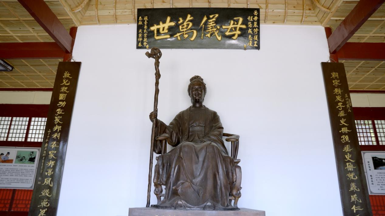 享殿:享殿,也就是古代用来守孝的房子。岳飞在葬母后按例制于此筑庐守孝,后因军务紧急,被迫移忠作孝,奔赴抗金前线。九江市书法家协会副主席曹晓为此书写楹联:母真巾帼完人今古宜哉第一;子誓河山还我忠孝允矣无双。