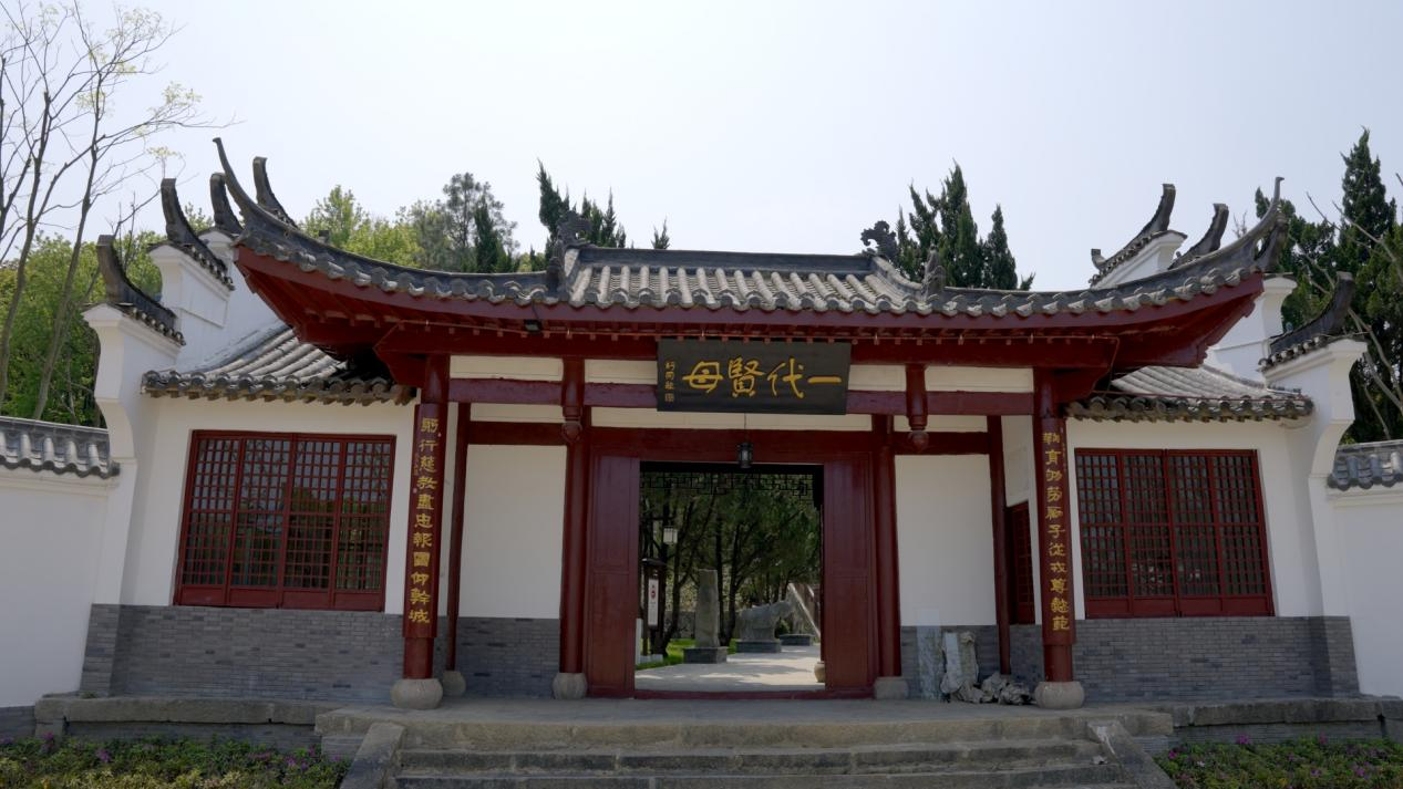 仪门:全国著名书法家舒同为此题匾“一代贤母”,吕龙柱先生撰书对联:鞠育劬劳励子从戎尊懿范;躬行慈教尽忠报国仰斡城。
