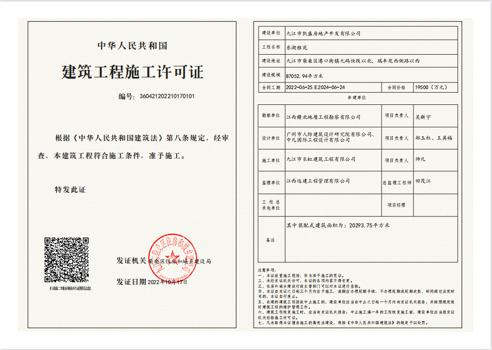 核发东湖雅苑建筑工程施工许可证