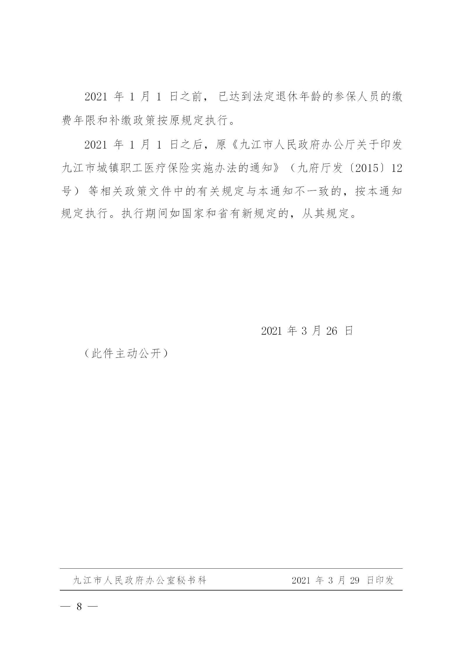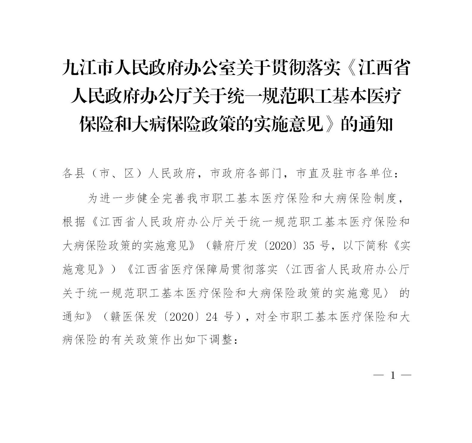 九江市人民政府办公室关于贯彻落实《江西省人民政府办公厅关于统一规范职工基本医疗保险和大病保险政策的实施意见》的通知