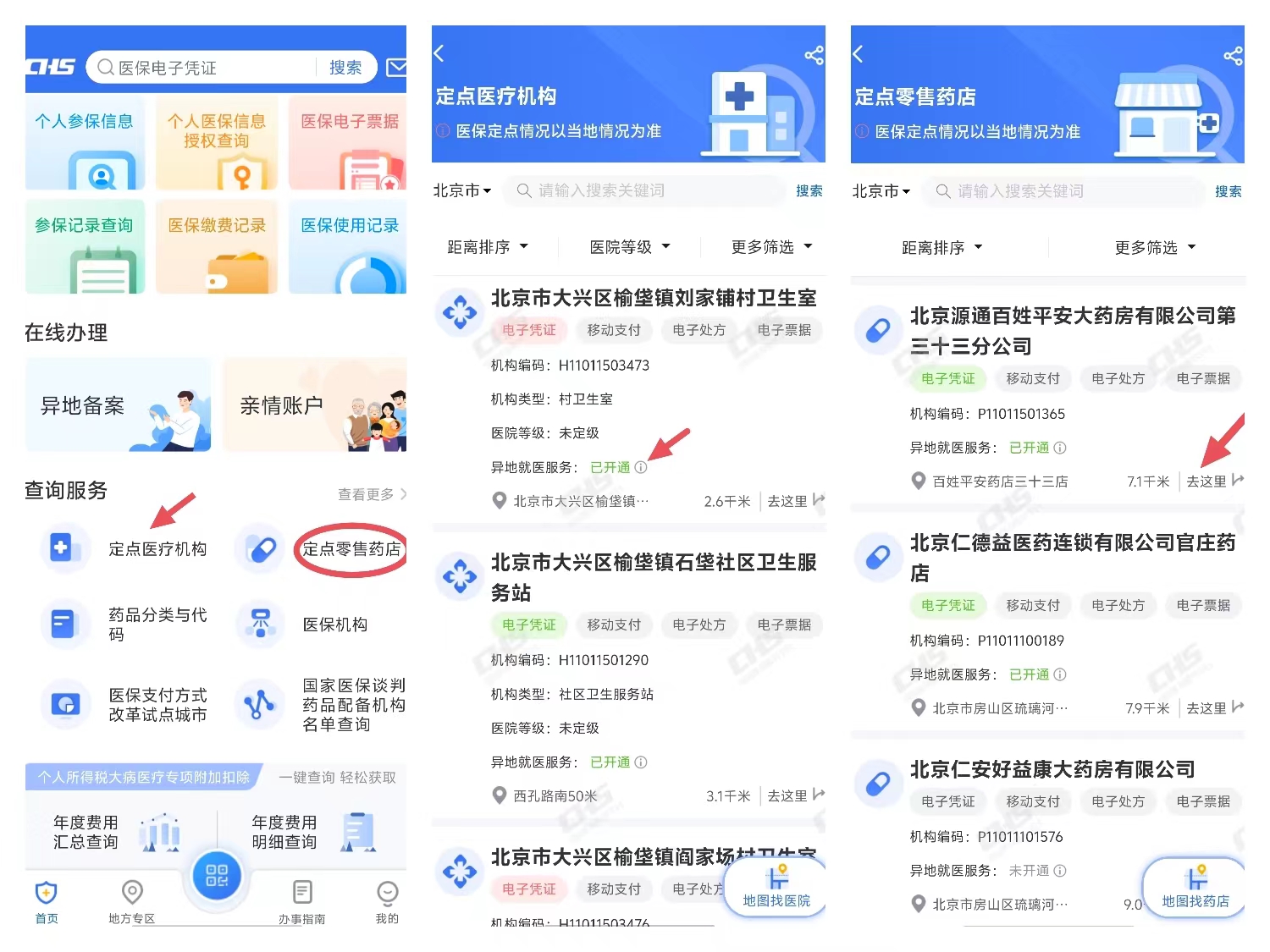 除了申请备案外,参保人还可以在小程序查询各统筹区及异地联网定点医药机构的开通情况。