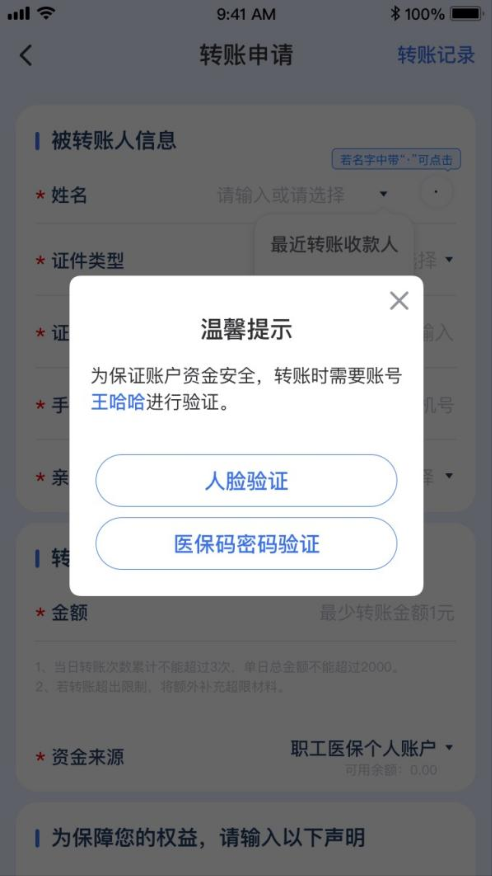 注意,使用“医保钱包”,需要转账人和收款人的地区均开通了“医保钱包”功能,才能进行转账。