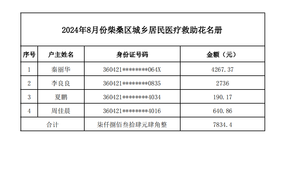 2024年8月份柴桑区城乡居民医疗救助花名册