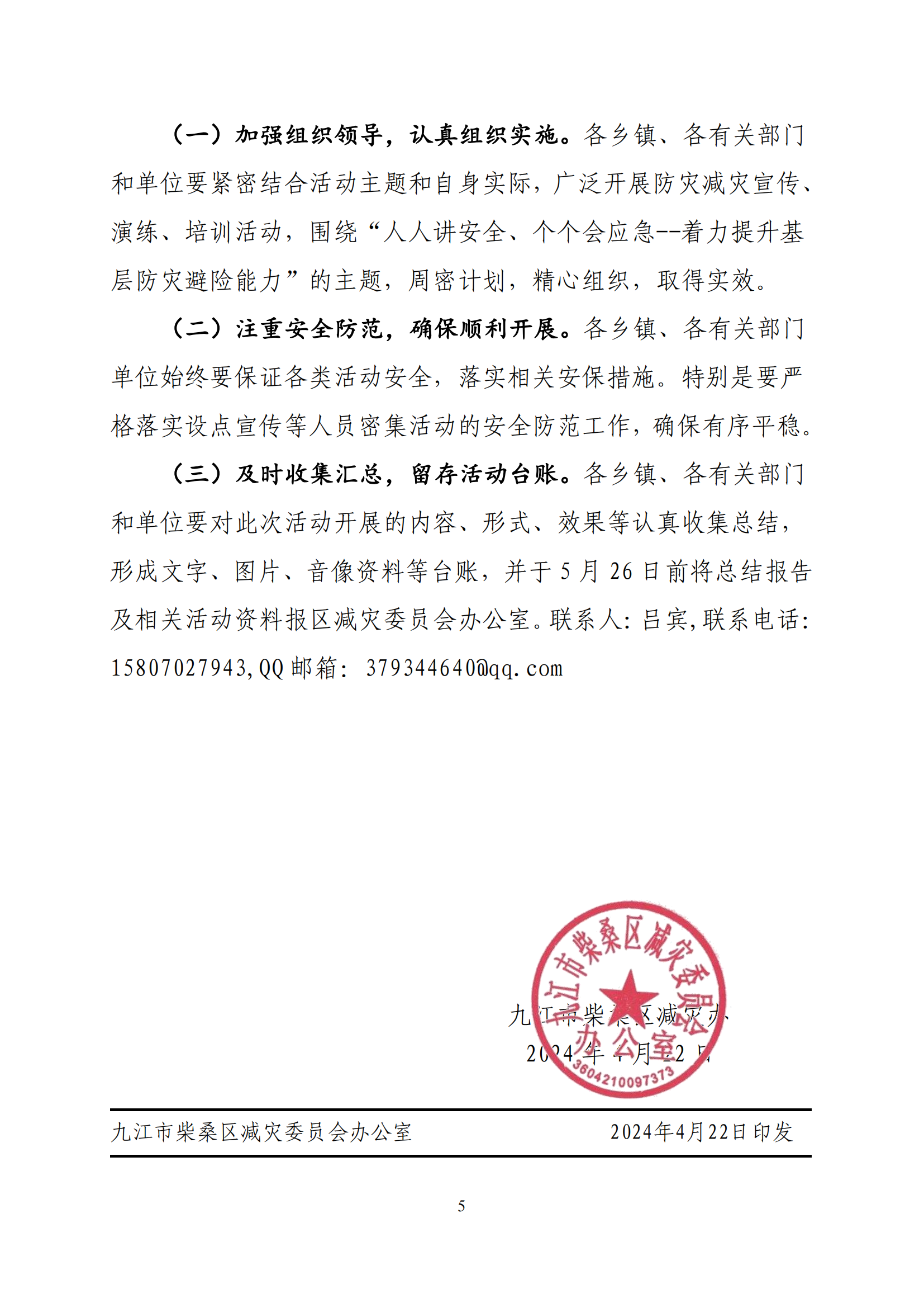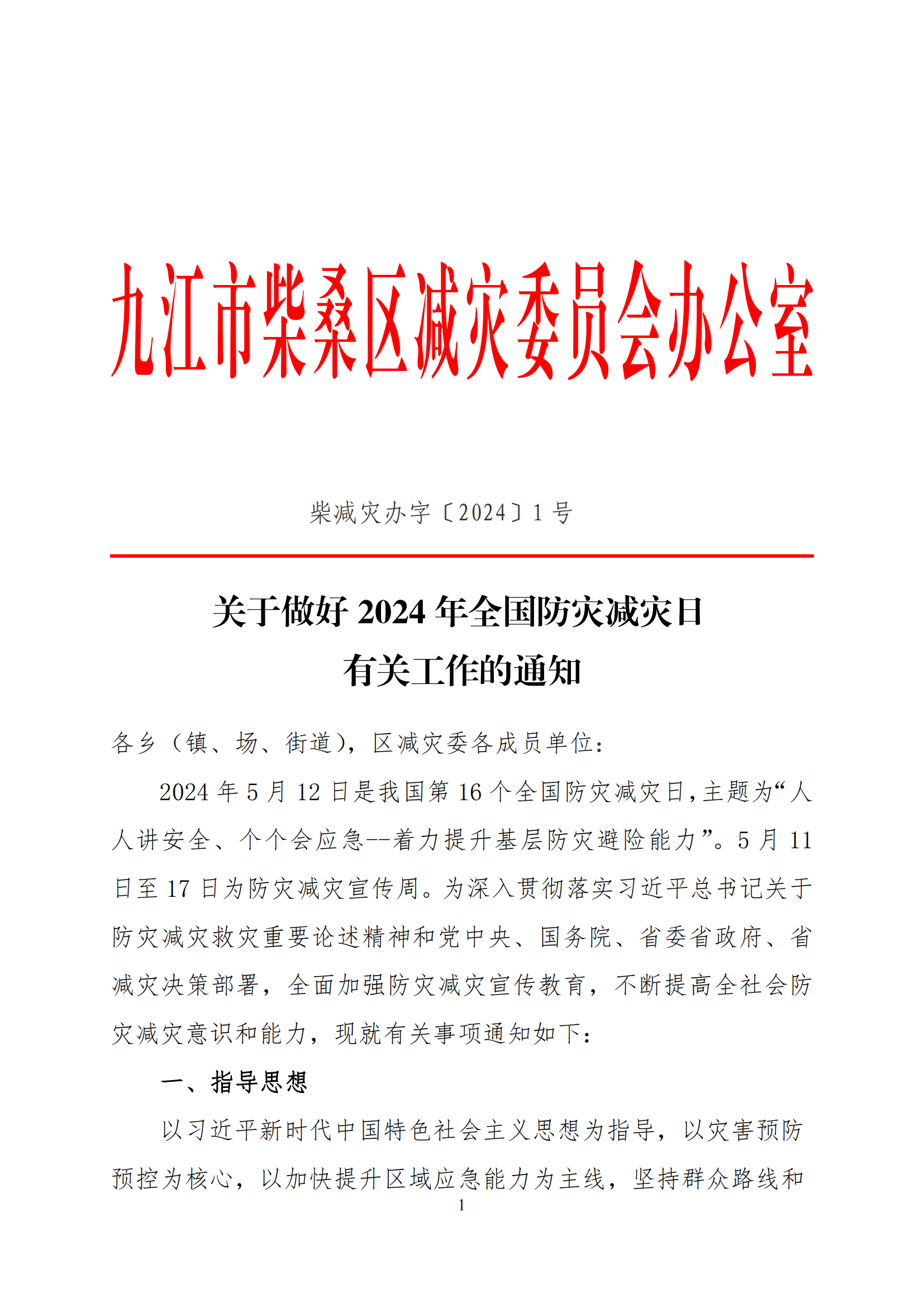 关于做好 2024 年全国防灾减灾日有关工作的通知