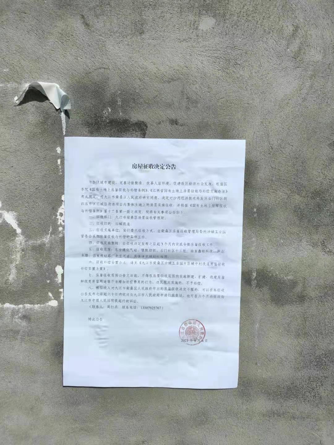 八、被征收人对九江市柴桑区人民政府作出的房屋征收决定不服的,可以在本征收公告发布之日起六十日内依法向九江市人民政府申请行政复议,也可在六个月内依法向九江市中级人民法院提起行政诉讼。