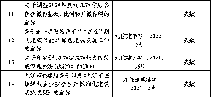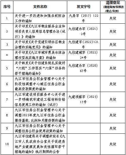 九住建法字〔2025〕7号九江市住建局关于公布规范性文件清理结果的通知