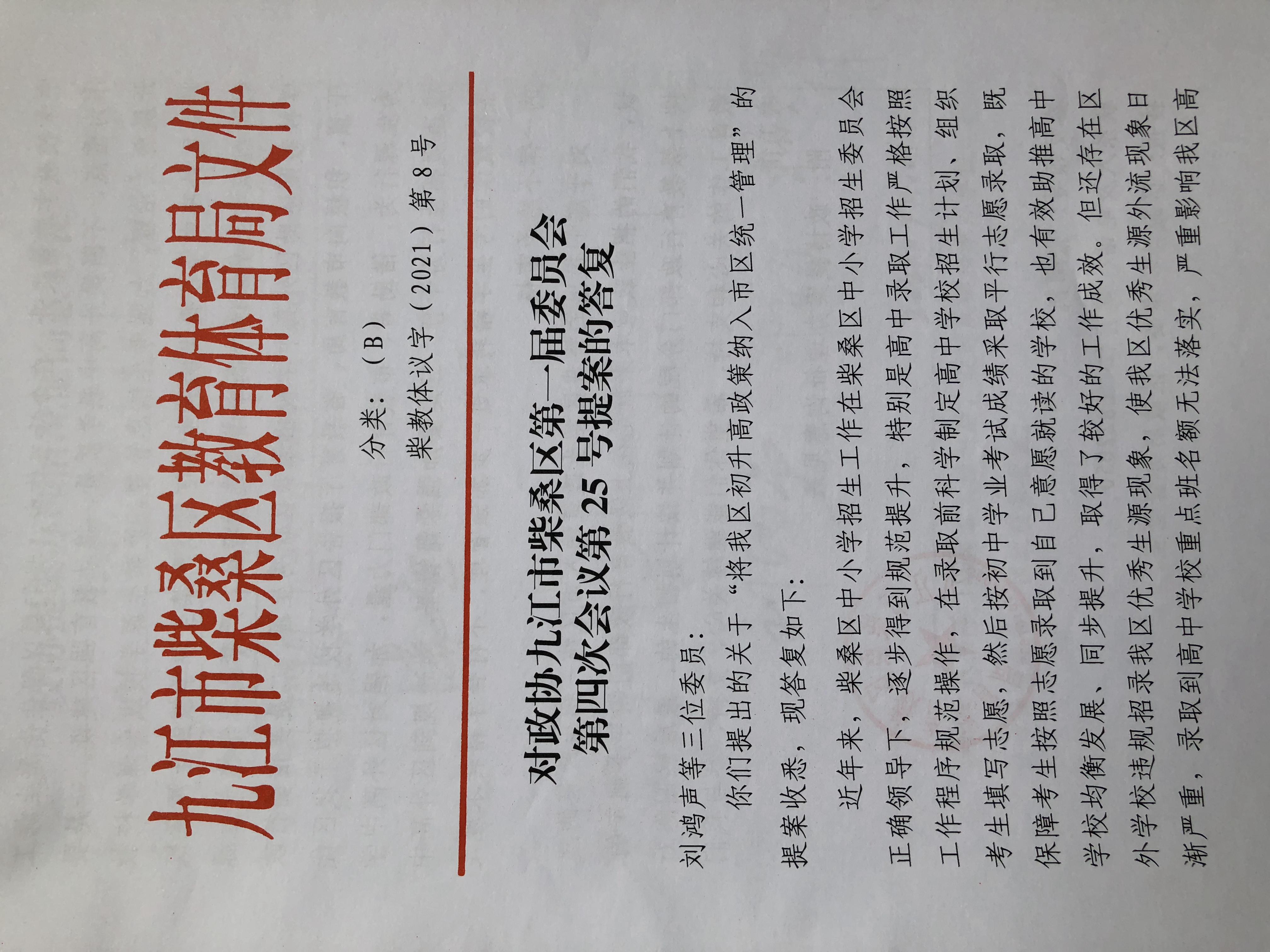 对政协九江市柴桑区第一届委员会第四次会议第25号提案的答复