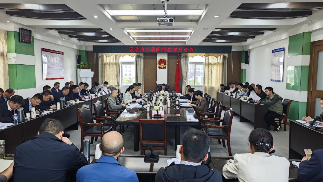 10月28日,区委副书记、区长潘光主持召开区政府二届第66次常务会。区委常委、常务副区长兰志春,副区长冯韬、聂晓峰、陈淑珍、钟静婧出席会议,区人大常委会副主任张珏,区政协副主席冷萍应邀列席会议。