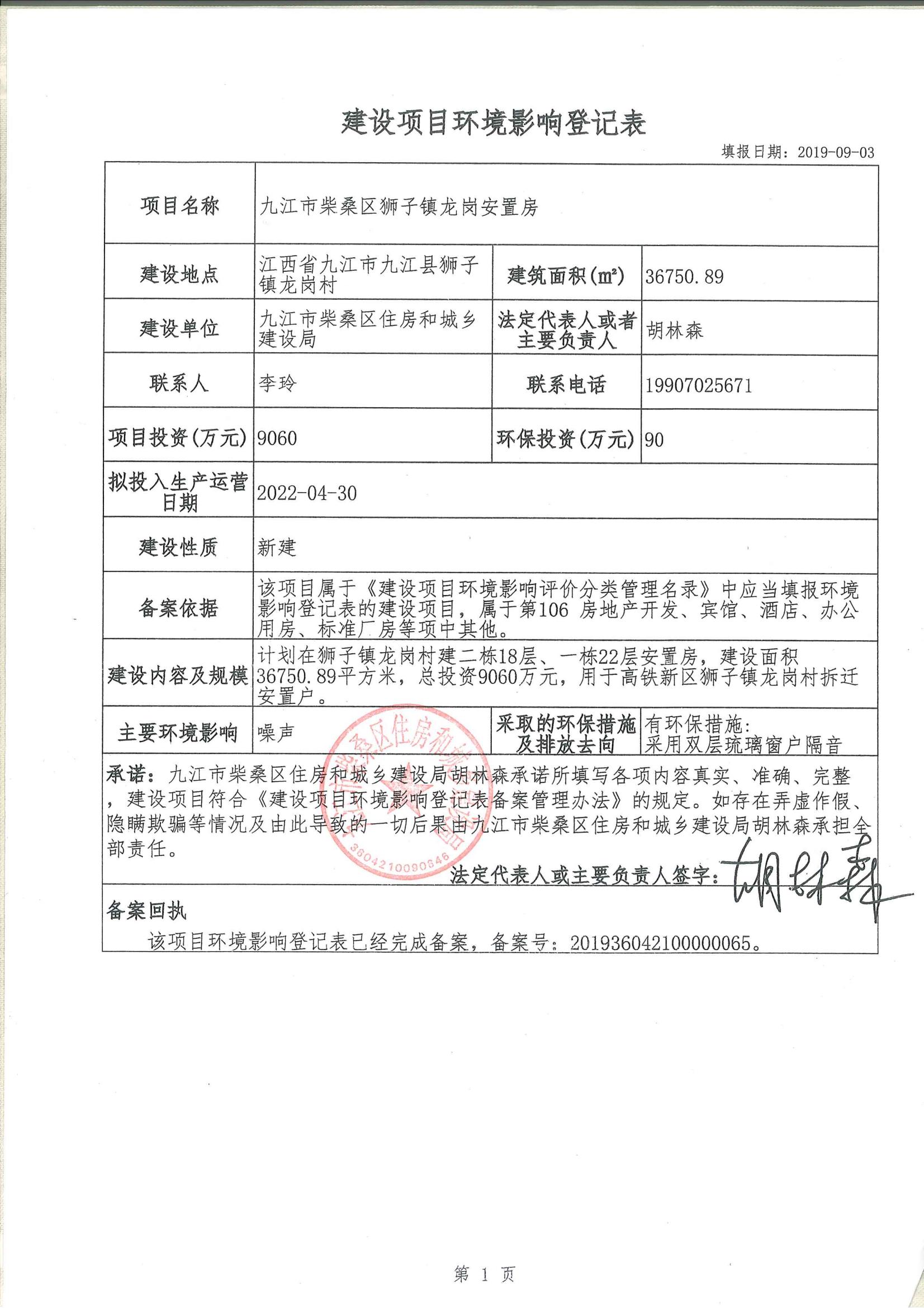 狮子镇龙岗安置房环评登记表
