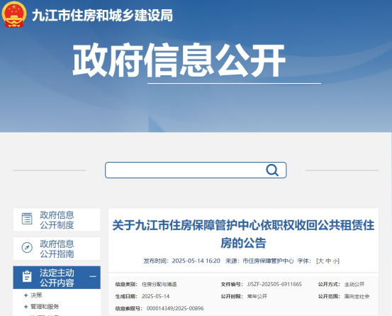5月14日,市住房保障管护中心发布公告,773户公共租赁住房承租户,存在欠缴租金6个月以上且无法联系,拟依职权收回公共租赁住房。经核查,怡居苑有42户承租户、怡芳苑一期有179户承租户、怡芳苑二期有100户承租户、怡和苑一期有10户承租户、怡和苑二期有35户承租户、怡濂苑有84户承租户、怡庐苑一期有47户承租户、怡美苑有43户承租户、怡祥苑有23户承租户、怡景苑有13户承租户、怡溪苑有93户承租户、怡庐苑二期有104户承租户,共计773户承租户(具体名单详见附件),存在欠缴公共租赁住房租金达6个月以上,且截至本公告发布之日,九江市住房保障管护中心仍无法与其取得联系。依据《公共租赁住房管理办法》(住建部令〔2012〕11号)、《九江市公共租赁住房管理办法》(九府办发〔2020〕39号)等相关文件精神,现九江市住房保障管护中心拟依职权收回上述公共租赁住房。如有异议,请承租户于2025年7月15日前与所辖小区房管所或市置地公司联系并足额缴纳欠缴租金,逾期未联系或未补缴租金的,九江市住房保障管护中心将依职权收回上述公共租赁住房,并邀请公证机构对收回房屋现状进行证据保全,证据保全公证材料保管期限为6个月(从公证书出具之日起计算)。1.长虹保障房管理所管辖小区:怡居苑一期、怡居苑二期、怡芳苑一期、怡芳苑二期;联系人:吴美霞;联系电话:18779257824。2.濂溪保障房管理所管辖小区:怡和苑一期、怡和苑二期、怡濂苑;联系人:李平;联系电话:13870229922。3.八里湖保障房管理所管辖小区:怡庐苑一期、怡祥苑、怡美苑;联系人:徐建斌;联系电话:18107927606。4.九江市置地投资有限公司管辖小区:怡溪苑、怡庐苑二期、怡景苑;联系人:兰欣;联系电话:18270257197。