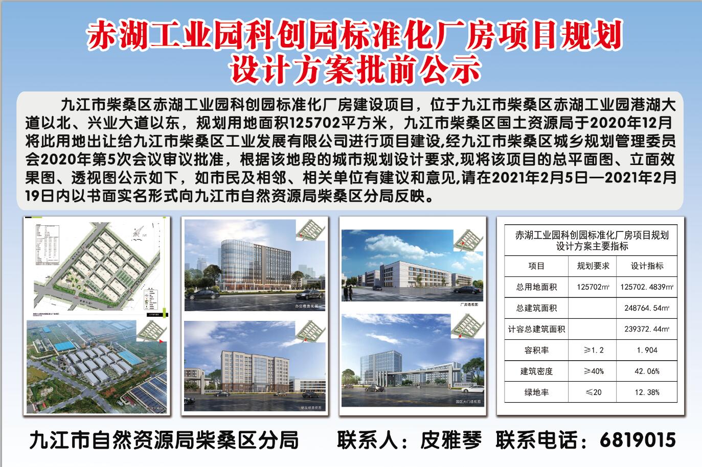 九江市柴桑区赤湖工业园科创园标准化厂房项目规划设计方案批前公示