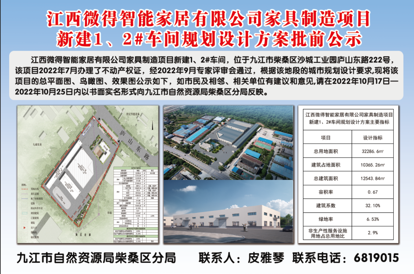 江西微得智能家居有限公司家具制造项目 新建1、2#车间规划设计方案批前公示