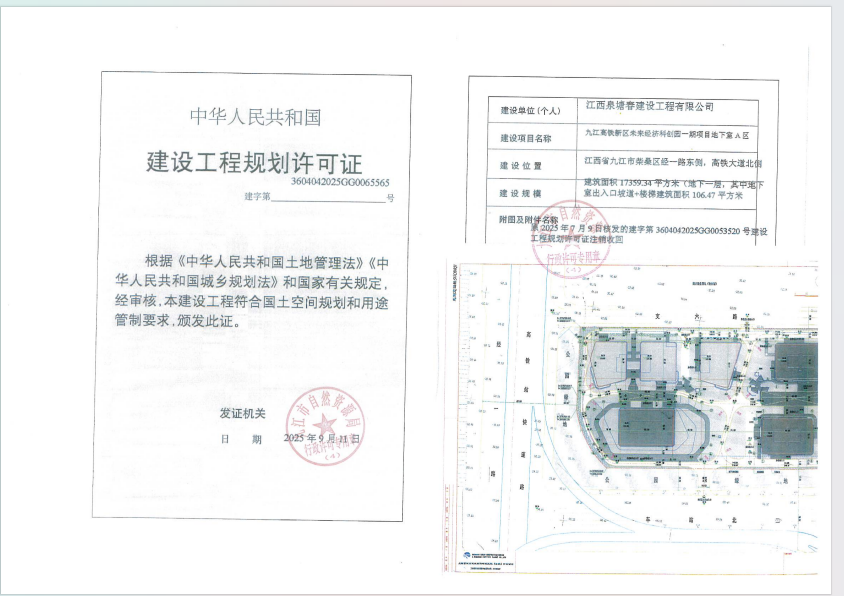 九江高铁新区未来经济科创园一期项目地下室A区、B区建设工程规划许可证批准结果公示