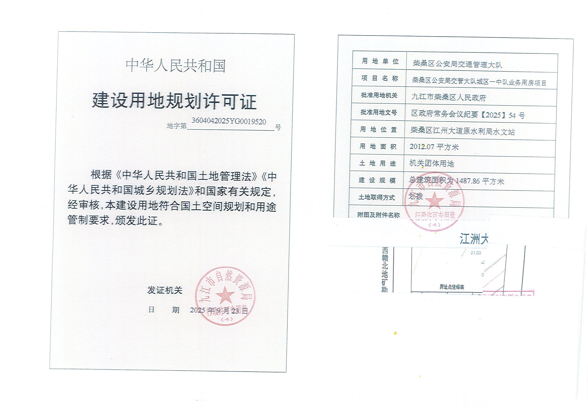 柴桑区公安局交管大队城区一中队业务用房项目建设用地规划许可证结果公示