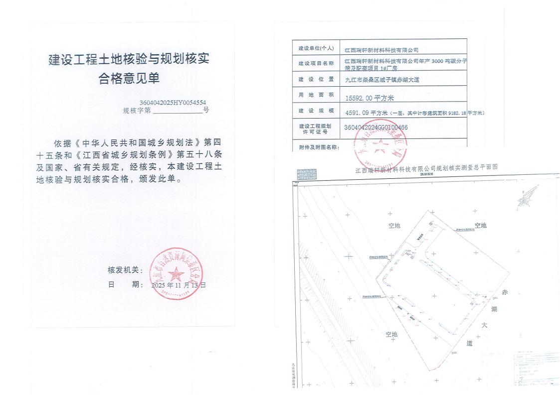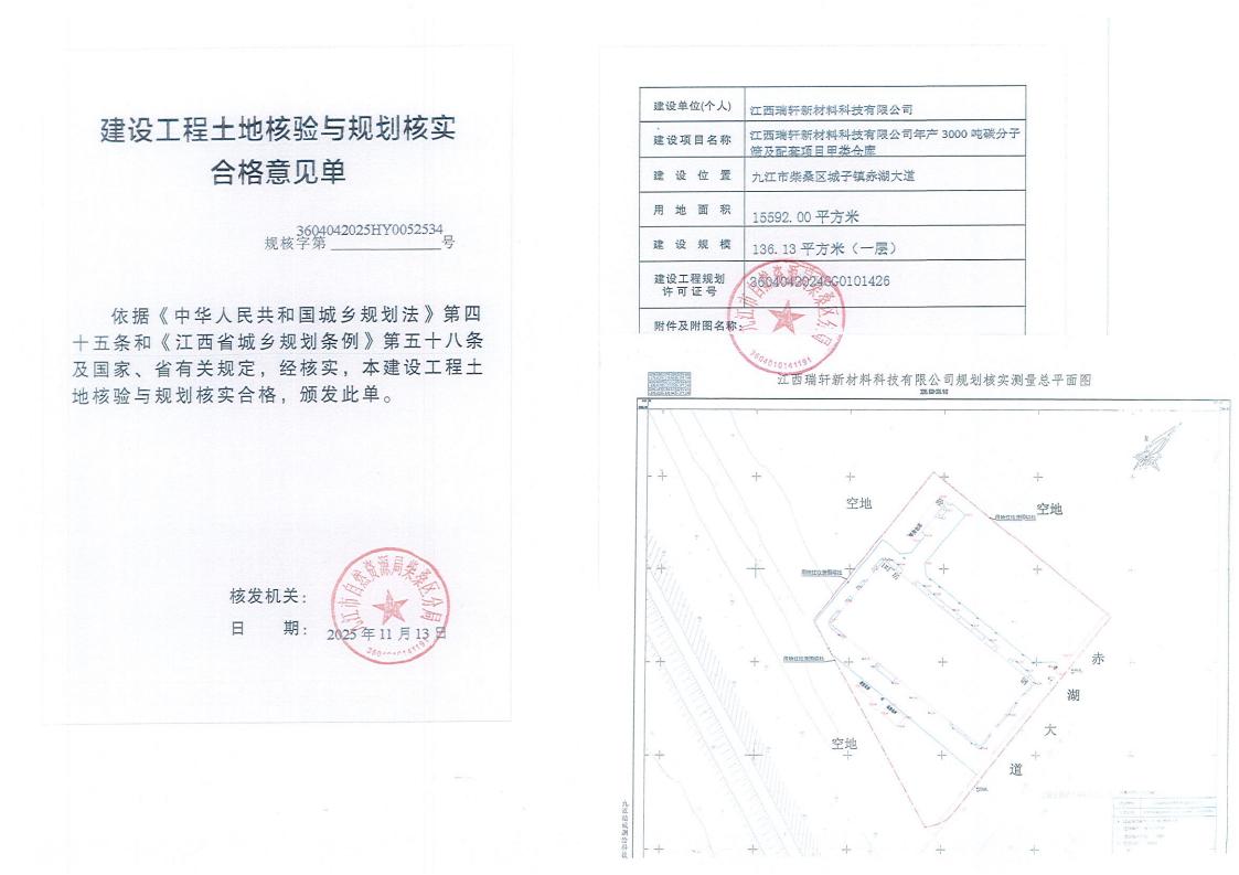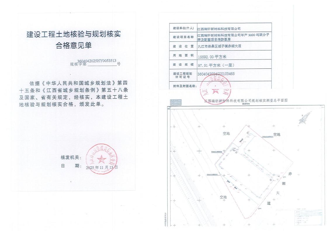 江西瑞轩新材料有限公司年产3000吨碳分子筛及配套项目甲类仓库、1#厂房、消防泵房土地核验与规划核实结果公示
