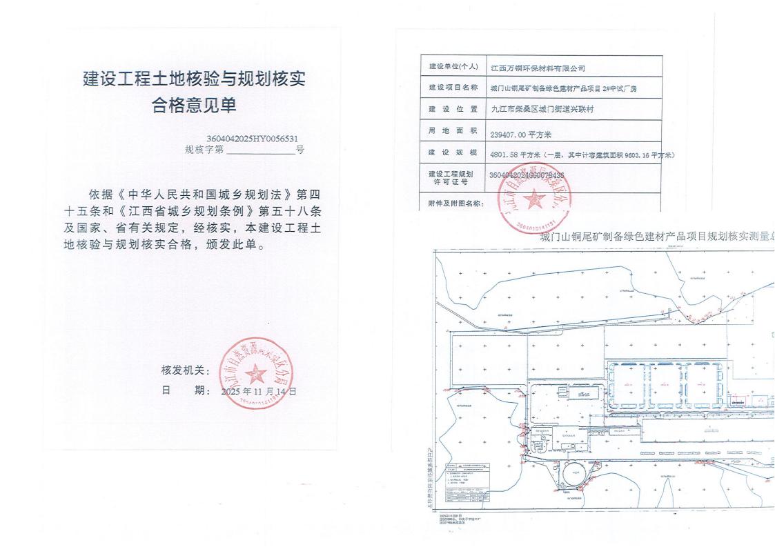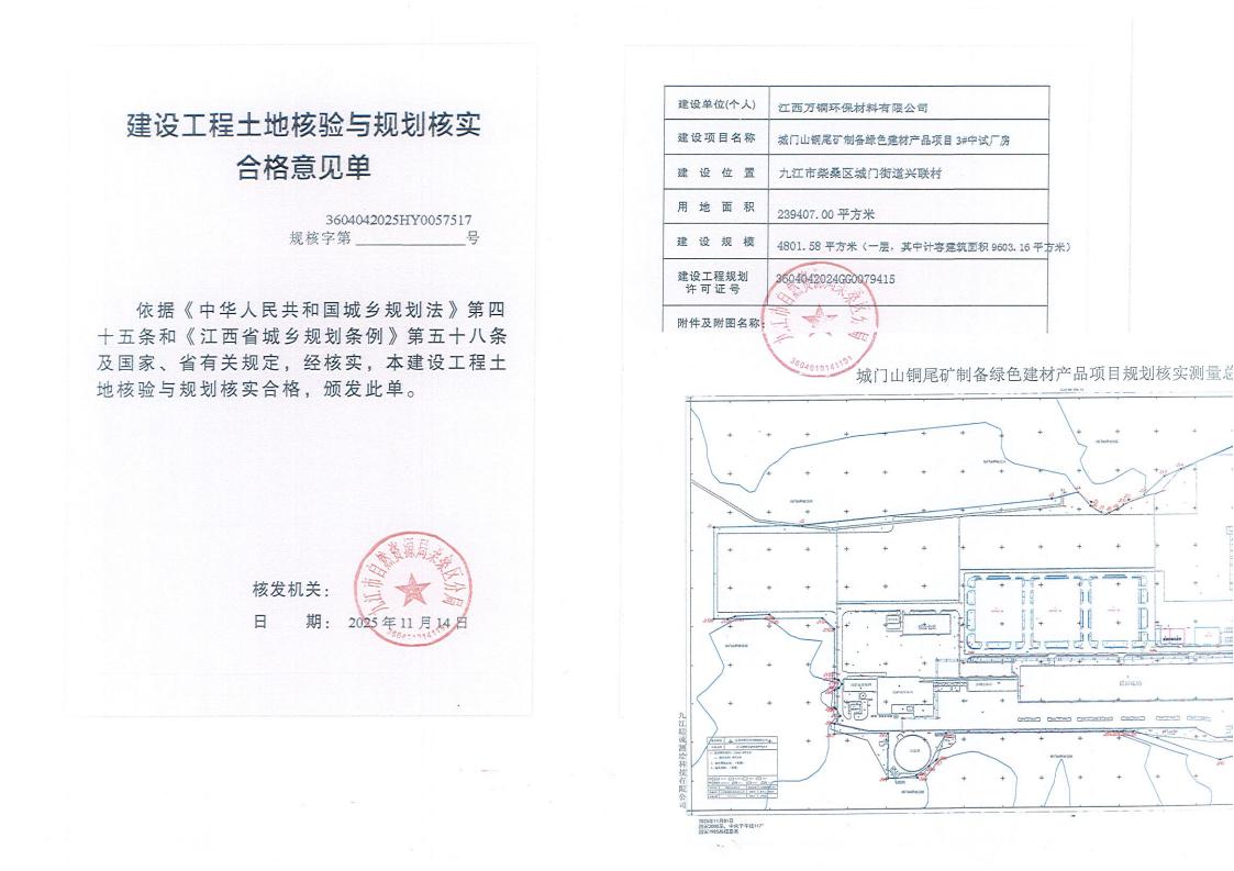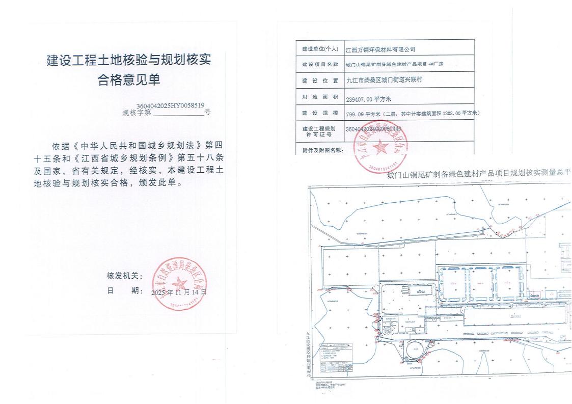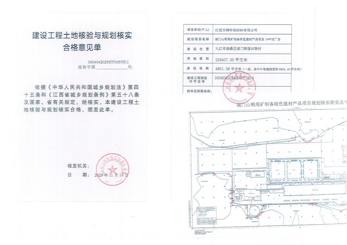 城门山铜尾矿制备绿色建材产品项目1#、2#、3#中试厂房、4#厂房土地核验与规划核实结果公示
