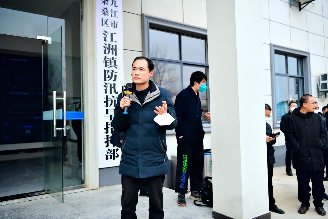 在江洲镇,考察团先后考察了洲头村党群服务中心、秸秆回收中心、江洲镇防汛仓库。江洲镇防汛仓库建筑面积1109平方米,属框架结构,总投资336万元,另增加场地硬化1200m²,堤顶杆线迁移300m,工程于2021年9月26日开工,于2022年6月10日建设竣工。江洲镇智慧水利调度系统在全镇险工险段及重要节点位置布设监控器、水位测量仪、雨量检测器等设备,实时接收遥测站的雨情、水情、工情等信息,对数据进行检查、纠错、插补、分类、格式化处理,建立计算用表和数据库,根据数据变化曲线,进行合理性判别,对各类事件发生提供预警、报警等功能,为指挥部决策提供基础的数据分析支撑。江洲镇始终坚持以人民为中心,着力解决群众关心的热点、难点和痛点问题,全镇共梳理“我为群众办实事”任务清单56个,截至目前已完成41项,切实增强人民群众的获得感、幸福感、安全感。