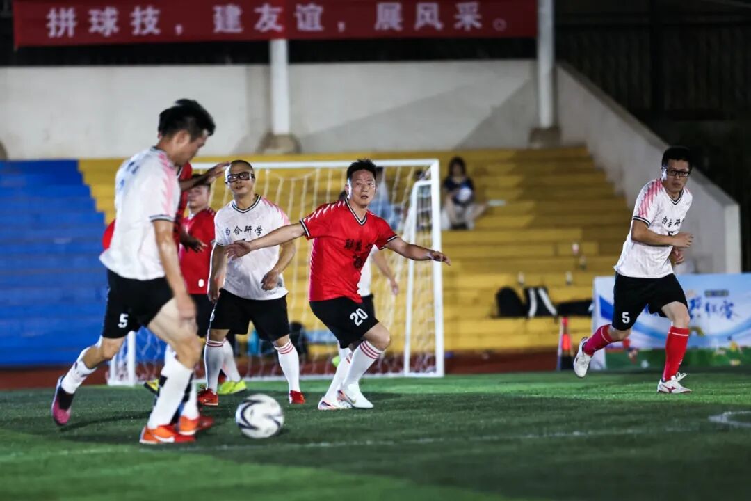 傍晚7:00,在夕阳的余晖下,随着裁判一声哨响,比赛正式拉开帷幕。球员们在绿茵场上奋力拼搏,精彩的传球、射门赢得现场观众阵阵欢呼。