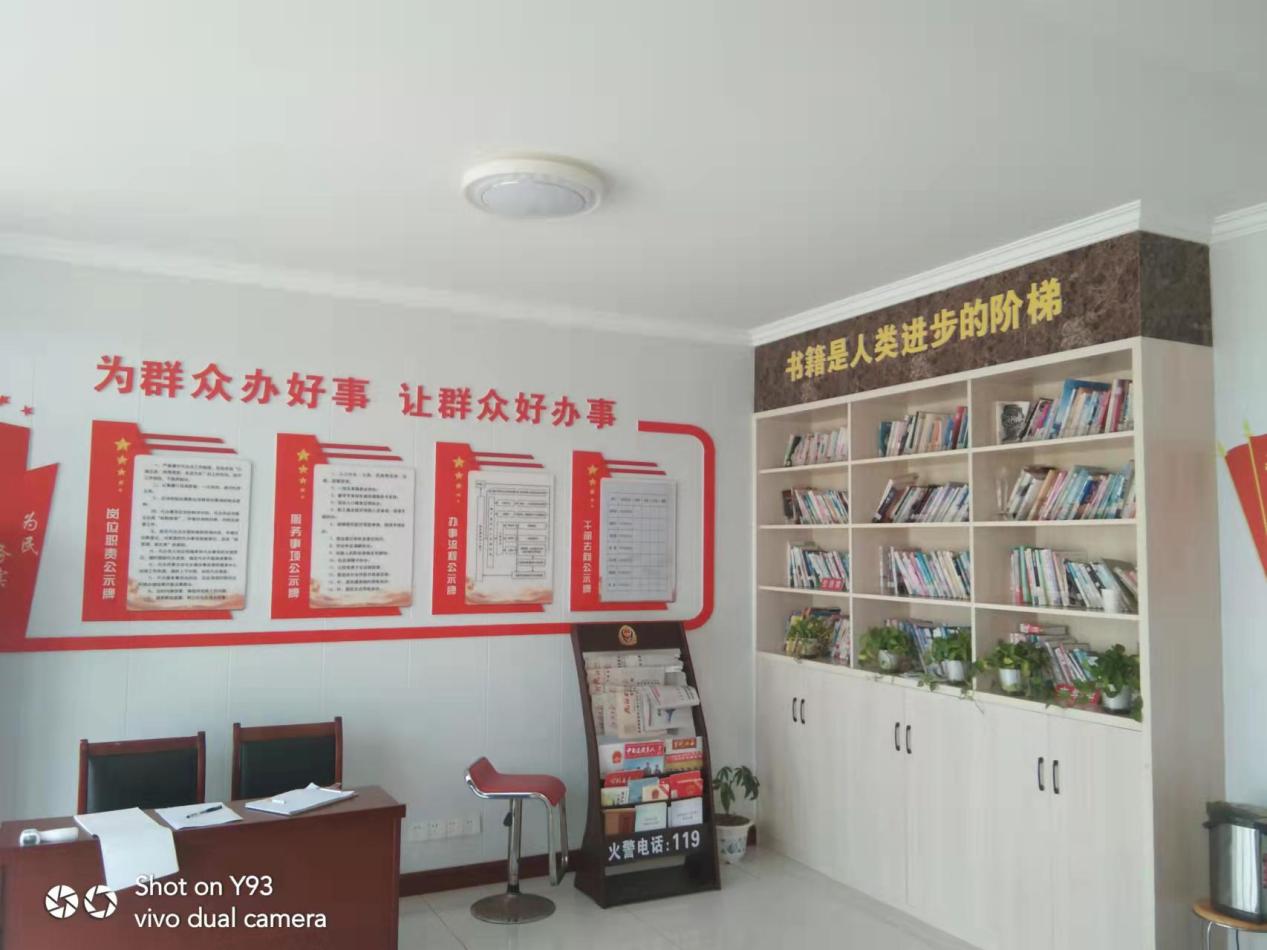 九号村党群服务中心现有办公用房380平方米,内设便民服务大厅,支部活动室、妇女二厅之家、党员谈心室、退役军人服务站、农家书屋、调解室、乡村振兴工作站等多功能室满足村民文化生活需要。