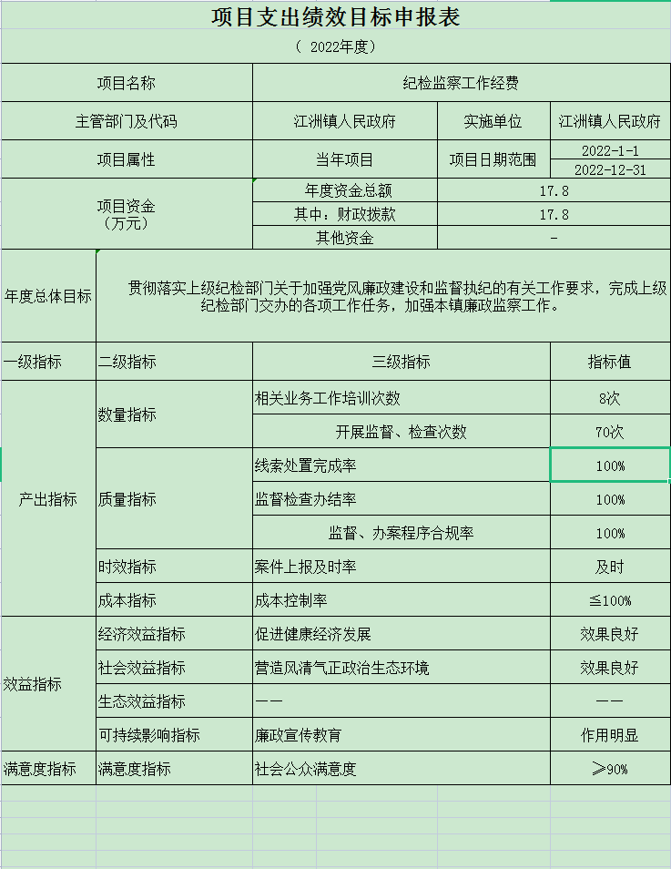 纪检监察工作经费项目绩效自评表